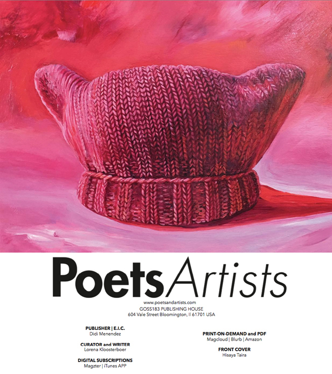 When it came time for me to speak about my painting, In the Pink, I shared how I believed that the Pussy Hat (originally co-created by Krista Suh) became such an immediate, global, viral icon of the Woman’s March because it employed such a feminine voice. It took knitting, a traditionally feminine craft, one that we do with our hands, and our hearts, in our homes or together in groups, using soft, warm, pretty and fuzzy fibers and often give as gifts to one another to wear with pride (a bit of kitty humor) saying in our sea of pink that, “We see you Pussy Grabber in Chief and we do not approve, we will not forget, and we will stand together and march for our rights.” Even the metaphor of knitting one stitch, connected to another, and another, collectively making something bigger than ourselves, is so perfect!