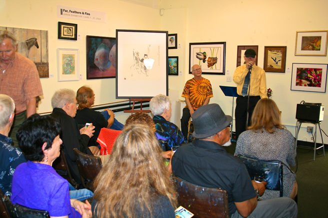 Pacific Art League instructor and watercolorist, Steve Curl gave a live demo of his technique, a real crowd pleaser! His dynamic use of a wash in the island’s light filled mist – very nice!