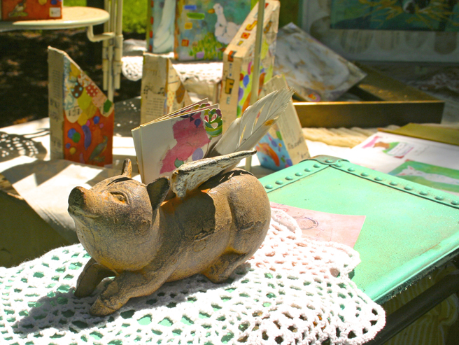 Denise Howard took second place for her graphite drawing, Golfer’s Error. Here the juror appreciated her light consistent touch and the clear telling of a complete story. And I had asked my kids before the show if they thought I would have the only dead animal in the show! Denise tells me that she’d also drawn a sparrow, called Ascension, who had sadly hit her window.