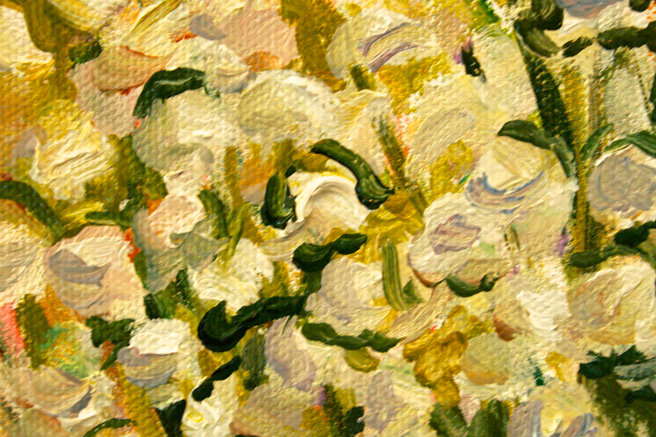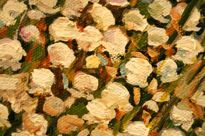 I decided to work on the star of the show today, those lovely lily of the valley. They symbolize purity and a return to happiness in the Victorian floriography, which I think is perfect for the spirit of this painting. Humbling though, when you’re working with a small brush, you can see the whole day dissolve away without a lot to show for it! Here I’m trying to capture the specific look and character of these little cheerful little flowers but struggling to keep it painterly – I don’t want it to end up looking like a tole painting!