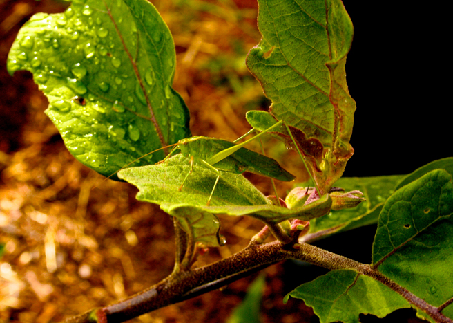 I didn’t squish this katydid – I don’t know why but I assumed it was looking for aphids (I guess I thought it was pretty like a ladybug) but they are related to grasshoppers and now that I look more closely, it was clearly going to town on these leaves.