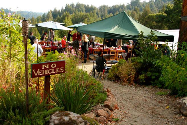 Cynthia Sandberg, proprietor of Love Apple Farms hosted a fabulous Eco-Feast benefitting the Museums of Los Gatos last night and I can only hope it will become an annual affair! This amazing biodynamic farm nestled in the Santa Cruz Mountains on a piece of terraced land (formerly developed for grapevines and run by the Smothers Brothers back in the eighties) is the kitchen garden for David Kinch’s Manresa (two star Michelin rating, and #5 on Bon Appétit’s 20 Most Important Restaurants in America). There are all kinds of courses you can sign up for and in the spring there’s a tomato plant sale (this is the place to go as she has some 100 varieties)! Love Apple is an early name for tomato when they were believed to be an aphrodisiac.