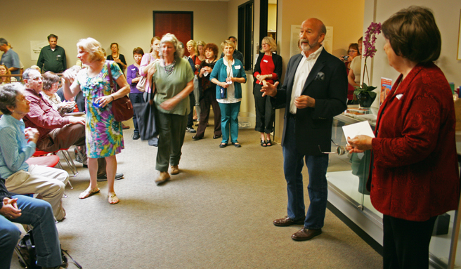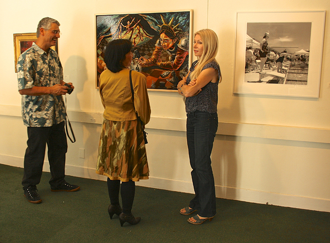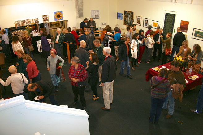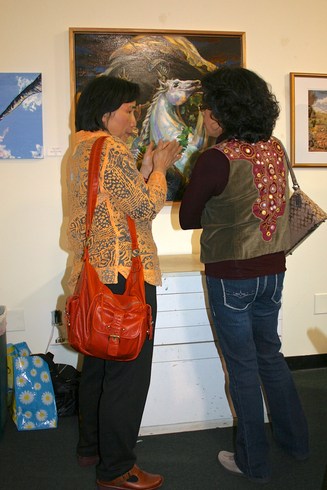First Fridays – It’s when all the arts all over the Bay Area seem to be on display. The Pacific Art League, for instance had an opening reception for four exhibits in their make-shift facility on Forest (their longtime, historic home next door is undergoing a major retrofit overhaul). There was a solo exhibition of watercolor paintings by Zhao Nan Duan, Fur, Feathers & Fins, a regional group exhibition juried by Michael Azgour, a group exhibition of contemporary abstract work and The Beats – Back Where It All Began, poetry and music presented by Leah Lubin. A lot going on in a very small space!