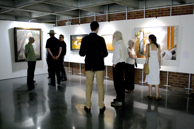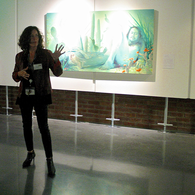 NUMU’s Executive Director, Lisa Coscino introducing Guest Curator, artist and writer, David Moseky (He’s the tall one in the middle of the photograph below).