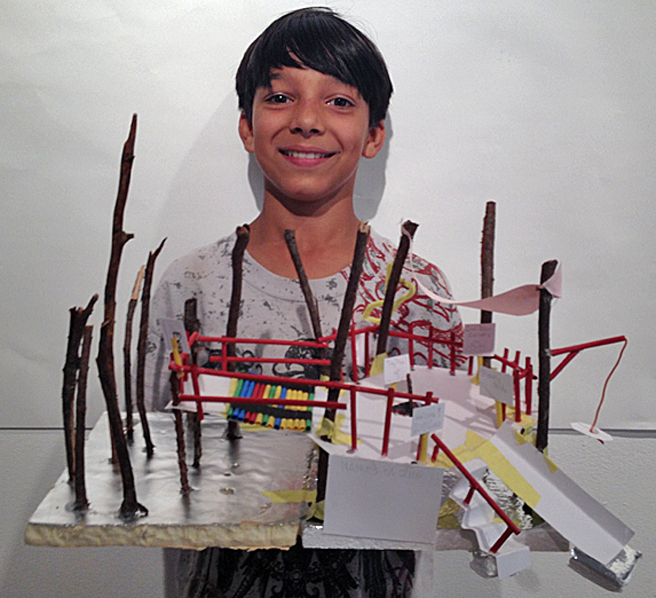 First campers got together in groups coming up with models for their tree houses. Ideas were combined and modified. Through trial and error, with lots of emphasis on process and hands on learning, they built this amazing structure (and a lot of self-confidence) by the end of the week. Clam House will be on display at Montalvo for the remainder of the summer!
