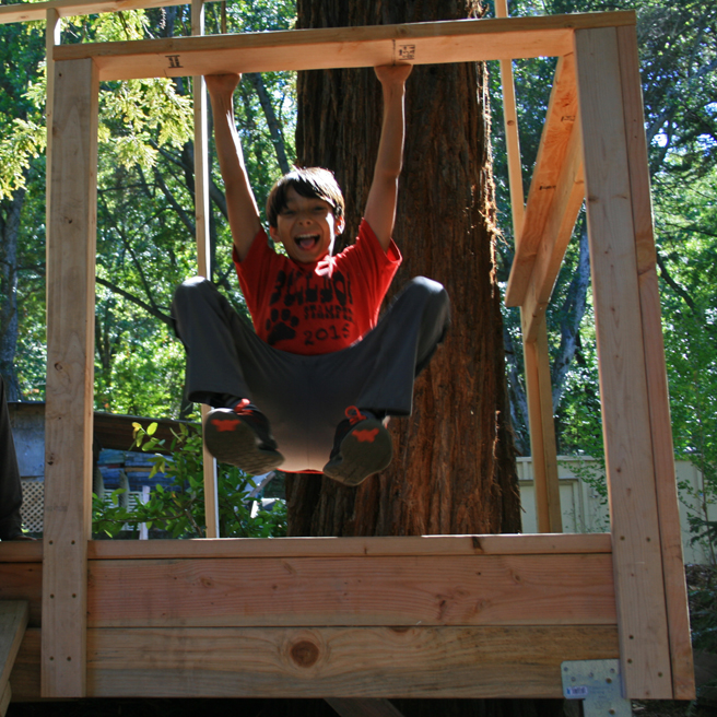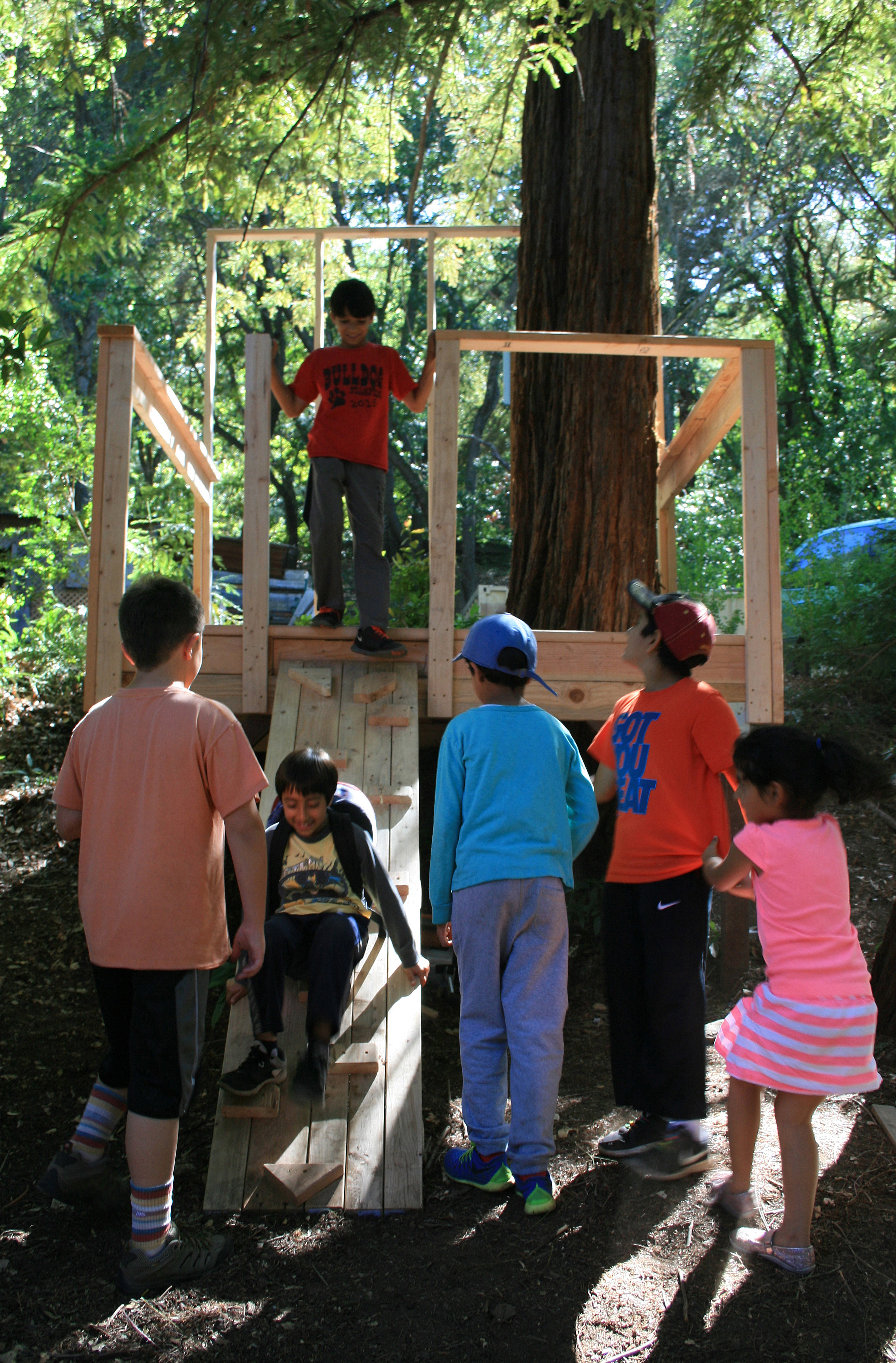 This is the treehouse that the campers at Montalvo’s Out on a Limb treehouse camp collaboratively built with artist and teacher, Justin Lowman (to name just one of the fabulous staff that worked with the kids on this project).