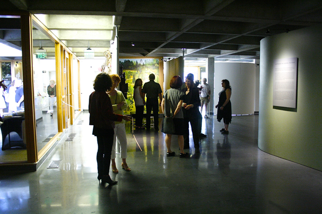 NUMU’s Executive Director, Lisa Coscino introducing Guest Curator, artist and writer, David Moseky (He’s the tall one in the middle of the photograph below).