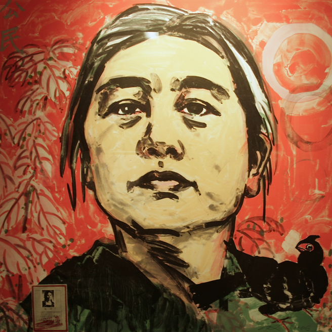 Hung Liu – Official Portraits – Citizen – color lithograph with collage