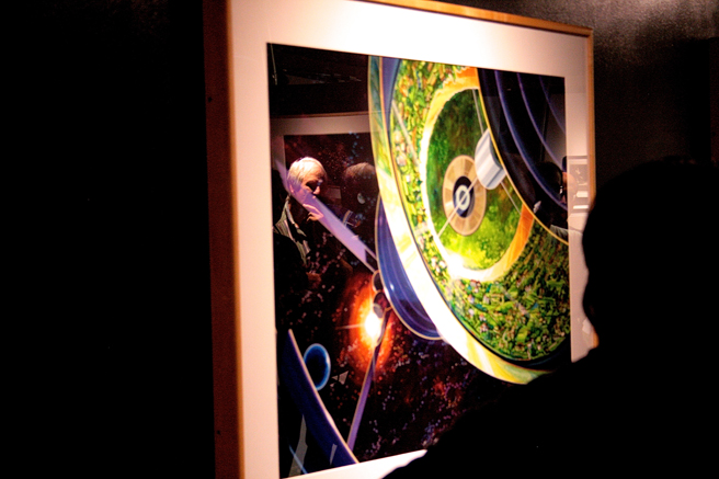 Thursday evening was a stellar night at NUMU with Los Gatos artist Rick Guidice, The NASA Paintings and a fabulous NASA Ames Research Center panel discussion, Our Place in Space: A Panel Discussion About the Future of Space Settlements! This dynamic exhibition of visionary space settlements Guidice developed for NASA in the 70’s helped to shape how we could see our future in space and has informed much later work on the subject. It runs from September 17, 2015 though to February 14, 2016.