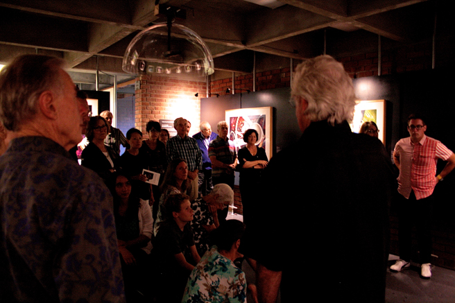 NUMU’s director, Lisa Cosino, and curator, Marianne McGrath introducing guest curator, gallerist George Lawson and artist Stephen Beal.