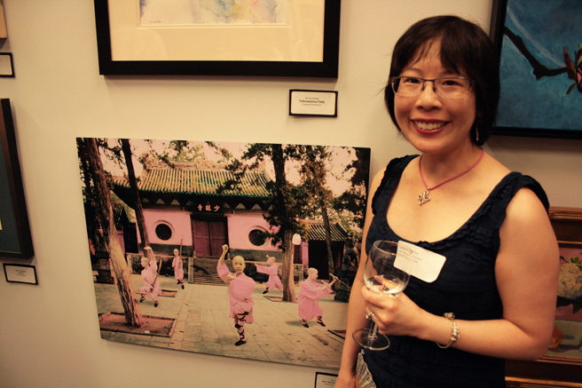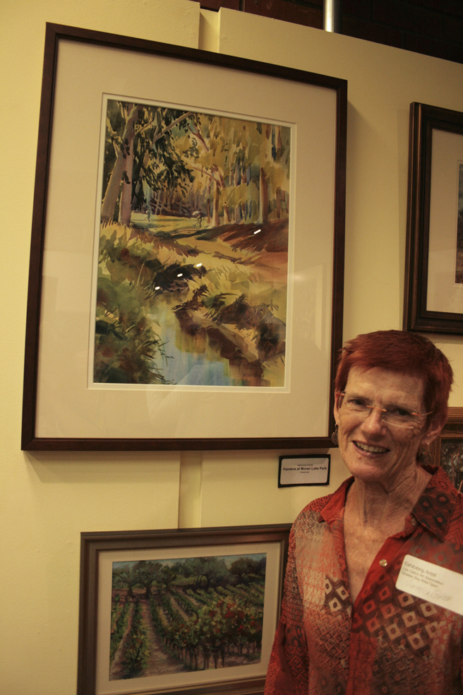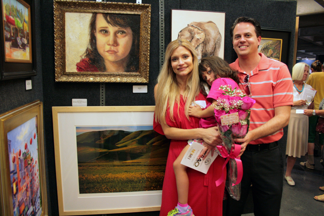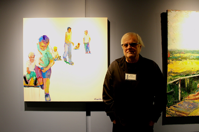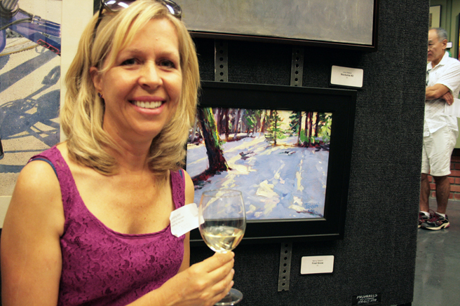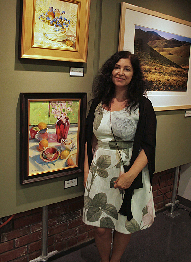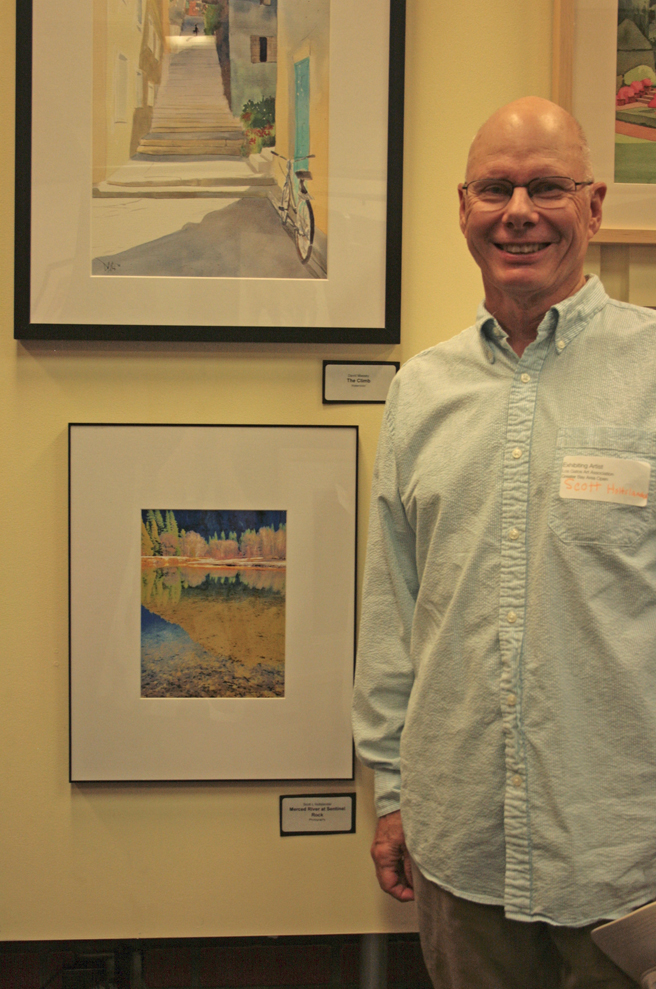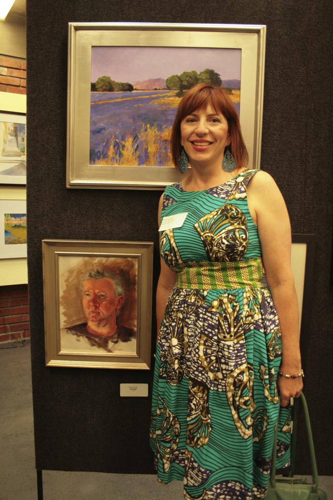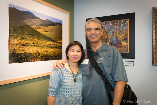 Scott L Holtslander with his photograph, Merced River at Sentinel Rock, Veronica Gross with her watercolor, Painters at Moran Lake Park and me with my oil, Forget-me-not Tea II.