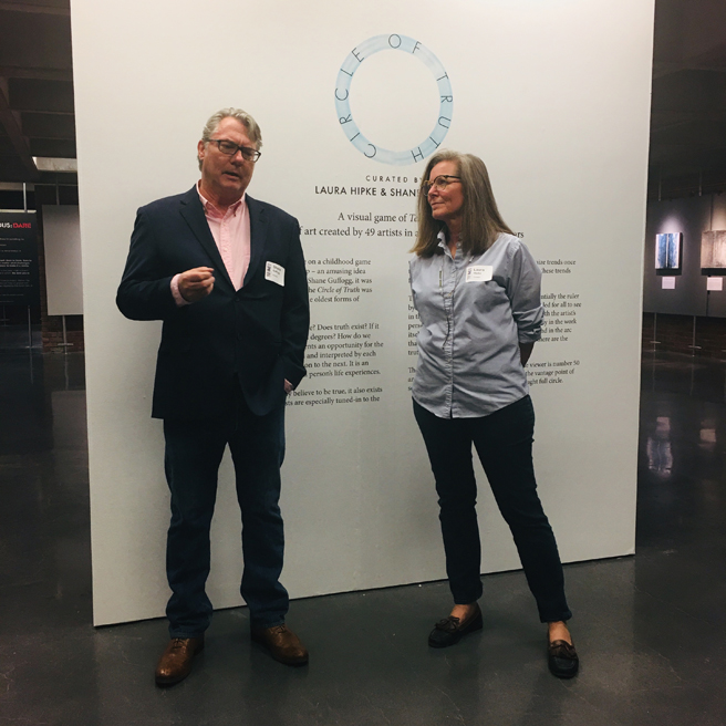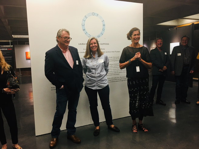 Circle of Truth curators, Shane Guffogg and Laura Hipke, former members of Pharmaka (co-founded by Guffogg), a defunct painter’s group museum/gallery in downtown Los Angeles, with NUMU’s Executive Director Maureen Cappon-Javey.