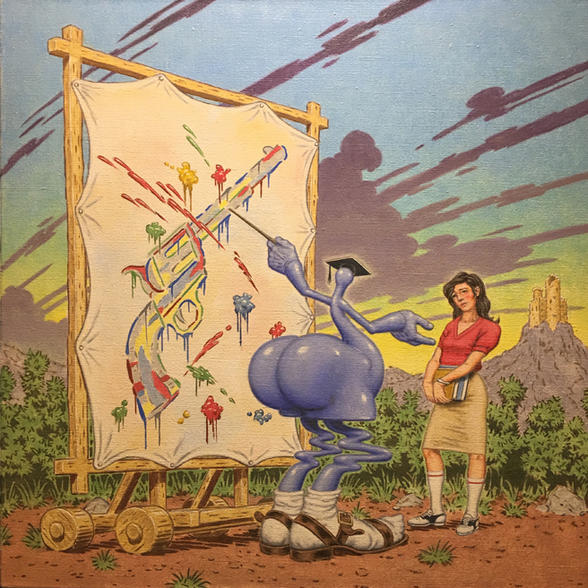 And so the game began 9 years ago with Los Angeles based curators, Laura Hipke and Shane Gaffogg arranging for a sponsor for all the canvases, a specialized traveling crate and 49 participating artists: Kim Abeles, Lisa Adams, Lita Albuquerque, Charles Arnoldi, Lisa Bartleson, Billy Al Bengston, Justin Bower, Virginia Broersma, Randall Cabe, Rhea Carmi, Greg Colson, Jeff Colson, Stanley Dorfman, Cheryl Ekstrom, Jimi Gleason, Rives Granade, Ron Griffin, Alex Gross, Shane Guffogg, Lynn Hanson, Doro Hofmann, Tim Isham, Kim Kimbro, Bari Kumar, Cal Lane, Margaret Lazzari, Mark Licari, Dan Lutzick, Deborah Martin, Susan McDonnell, Christopher Monger, Jim Morphesis, Andy Moses, Juan Carlos Munoz Hernandez, Gary Panter, Daniel Peacock, Bruce Richards, Michael Andrew Rosenfeld, Ed Ruscha, Eddie Ruscha, Paul Ruscha, John Scane, Vonn Sumner, Matthew Thomas, Alison Van Pelt, Michelle Weinstein, Ruth Weisberg, Robert Williams and Todd Williamson.