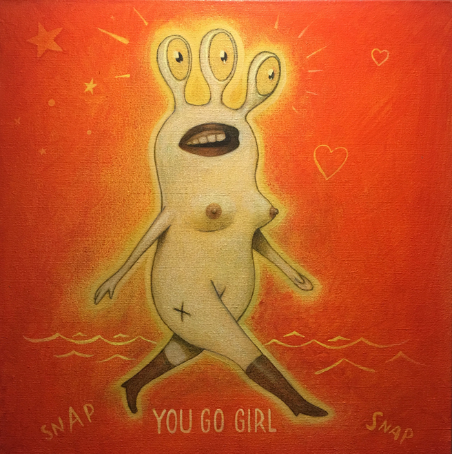Circle of Truth debuting at NUMU is based on the idea of Telephone, a game where children are seated in a circle and a statement is whispered along in a chain from ear to ear, until it comes out at the end as something unrecognizable. But what if this was done visually, with each artist asked to find the truth in the painting that came before them with a responding piece of their own. What elements, if any, might be carried through to the end?