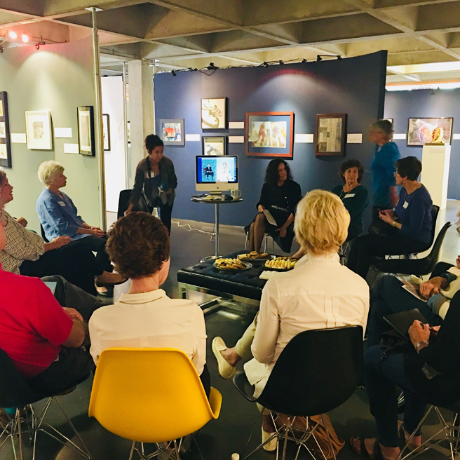 NUMU curator Marianne McGrath with artist Julie Heffernan. It was all about the redheads – in the historic images, in the paintings, and in the audience!