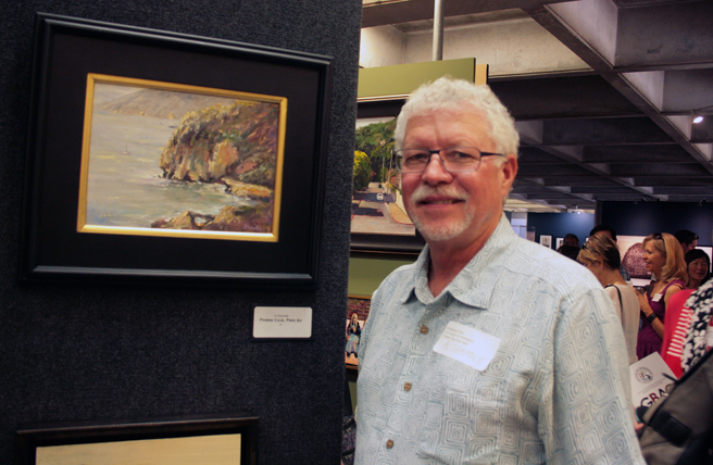 Al Shamble with his oil, Pirates Cove, Plein Air.