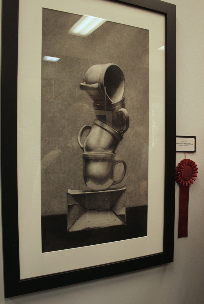 Craig Sanborn drew second place for his charcoal, carbon, pastel drawing, Deception of Independence.
