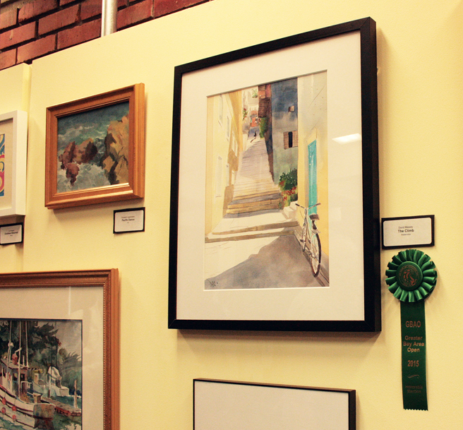 HUGE turn out for the Los Gatos Art Association‘s Greater Bay Area Open juried exhibition held at the New Museums of Los Gatos on Saturday! Juror Peggi Kroll-Roberts chose 66 pieces for this regional show sponsored by the Los Gatos Art Association.