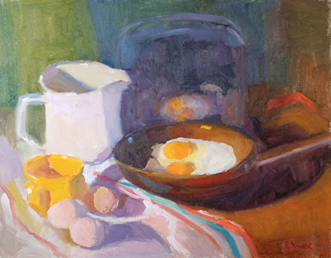 Ellen Howard received an Honorable Mention for her oil, Serve them Up!