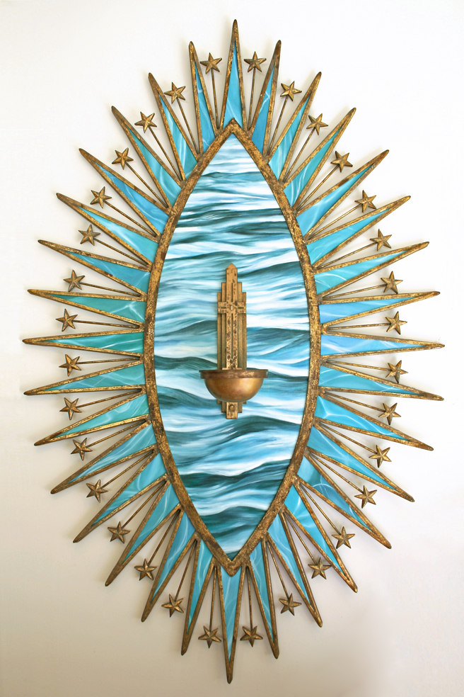 With my assemblage painting with found objects and Pacific Ocean water, Stilla Maris which is Latin for Drop of the Sea and is thought to be the precursor to Stella Maris.