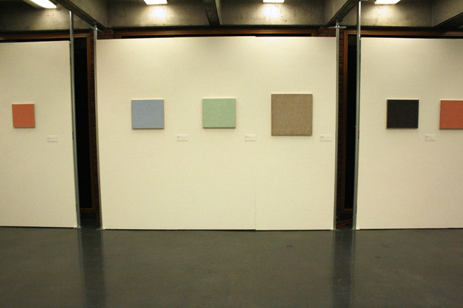 This show spans a decade of work, and consists primarily of acrylic gouache applied to board, muslin and linen. These pieces have been inspired by textiles, music, the work of artists such as Piet Mondrian and Agnes Martin but primarily by the materiality of the work, the way the paint reacts to its substrate, the way colors butt up against each other and by the transformative process itself.