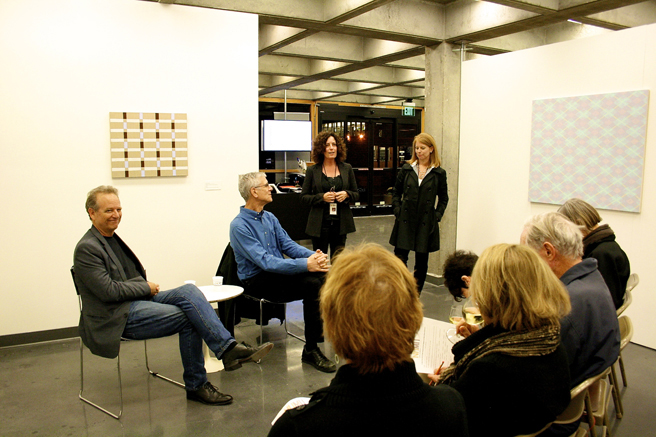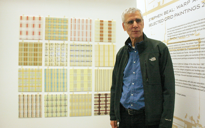 The New Museums of Los Gatos presented a talk Thursday evening with artist Stephen Beal in conjunction Warp and Weft, an exhibition of Beal’s grid paintings that was guest curated by gallerist George Lawson. It runs until January 3, 2016.