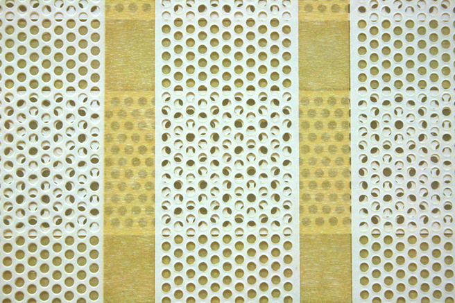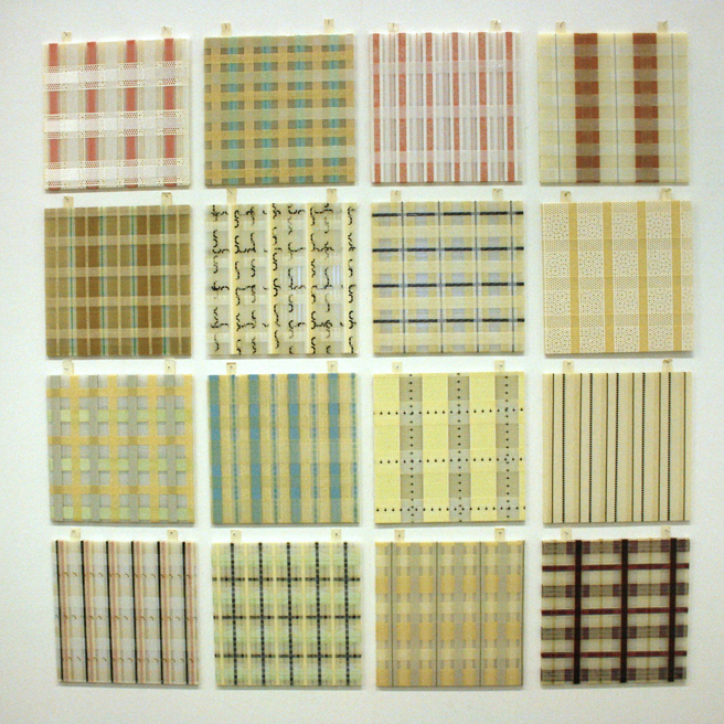 This series of tape pieces, Untitled #1 – #16, from 2005 is made up contact tape on fluted acrylic panels.