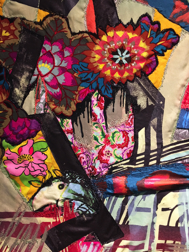 Ashley Rodriguez Reed and little one – The Forest of My Wild Heart – 2017 – Silk-screened, digitally printed, found, sewn and embroidered fabric.