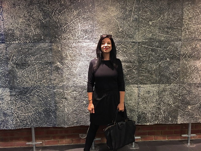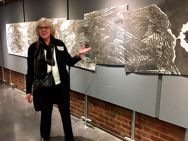 Me with Betty Friedman‘s Untitled (triptych) 196, 2010 – Intaglio, chine collé, printed on handmade paper.