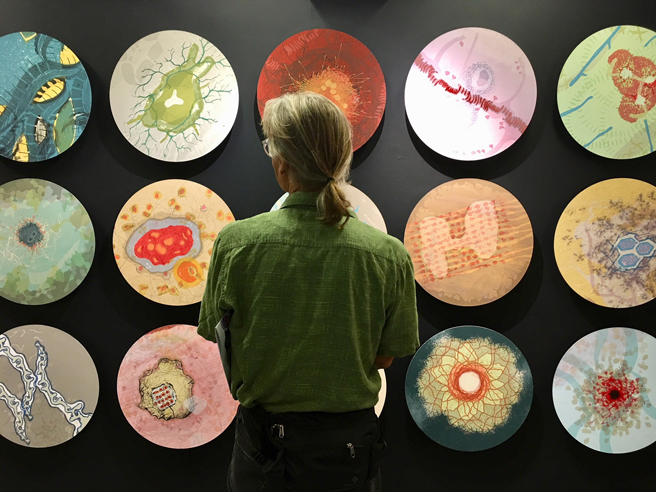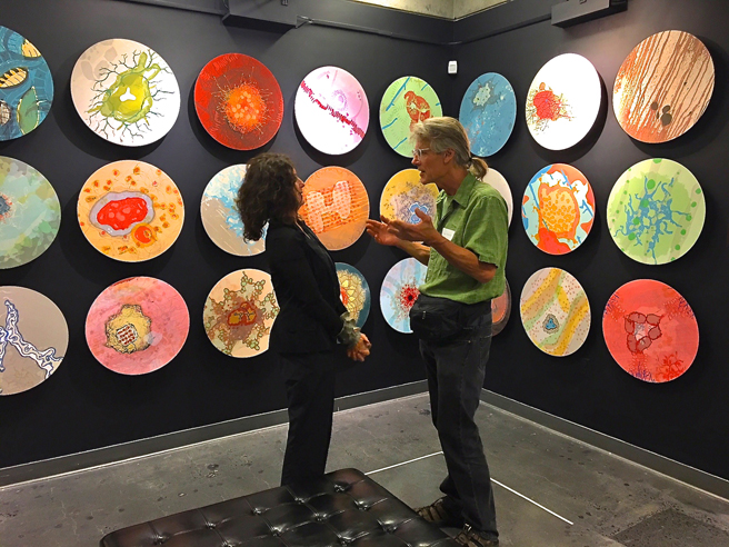 NUMU’s Executive Director Lisa Coscino in conversation with Genetic Garden’s artist Kent Manske.