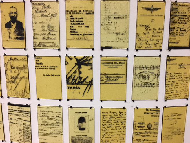 Michelle Murillo with DNA MAP – For a Shifting Identity – 2015 – Fused glass screen print.