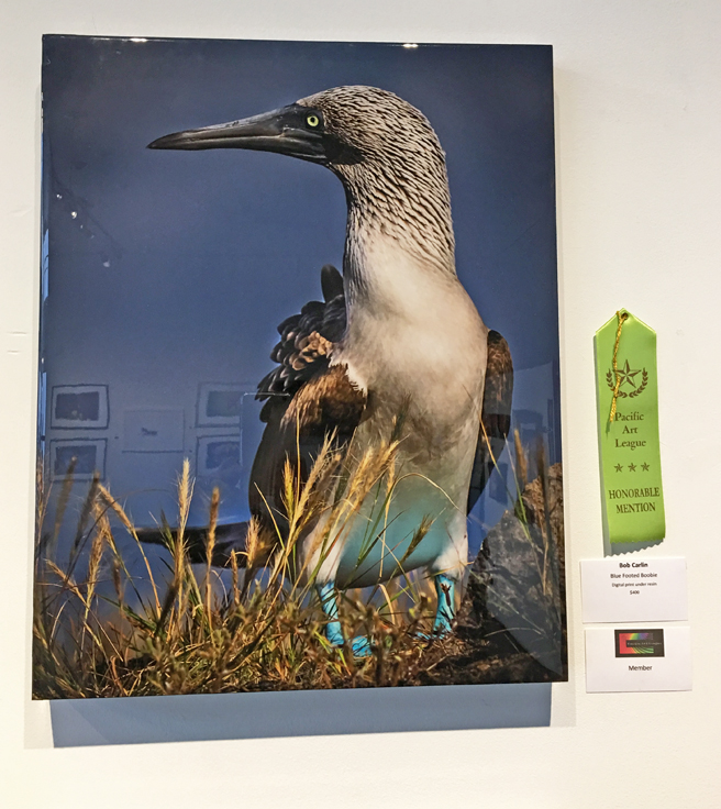 A second Honorable Mention for Bob Carlin‘s digital print under resin,  Blue Footed Boobie .