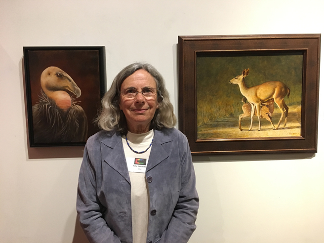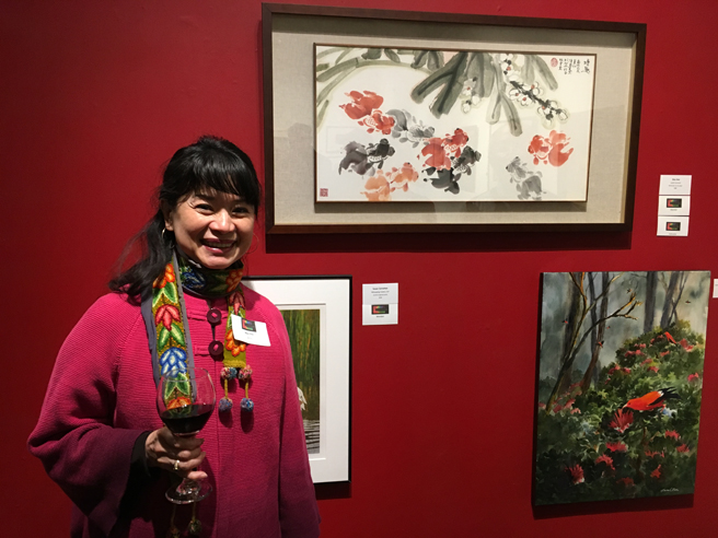 Fur, Feathers & Fins is currently showing at the Pacific Art League in Palo Alto, California, where I have three of my Birds & Teacup paintings. Juried by DeWitt Cheng, curator, critic and teacher, this exhibition explores a variety of approaches to depicting animals and our relationships to them from the purely representation evocations of them in their natural habitat to the utilitarian, metaphorical, symbolic, playful and even removed.  I can’t help but think about this subject matter in terms of the Anthropocene, how do we look at animals now that most of their worlds are impacted if not threatened by ours. Is the new wild, one of suburban back yards, zoos and laboratories? Something I think about anyway – Elizabeth Kolbert’s, The Sixth Extinction: An Unnatural History is a great book on this subject! This show wraps up March 30, here are a few pictures from the opening reception, with links to artist’s websites, if available, when you click on their names.
