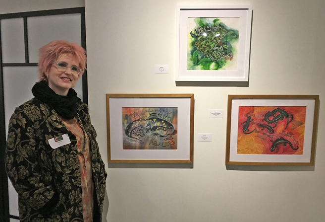 Dotti Cichon with her installation she collaborated on with Jamila Rufaro.