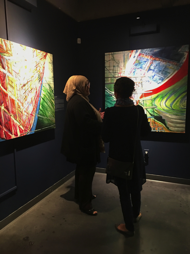 Pantea Karimi speaking about her silkscreen, Mapping a Gulf: The Persian Gulf Map and Tour of The Persian Gulf Album with Lorraine Lawson.