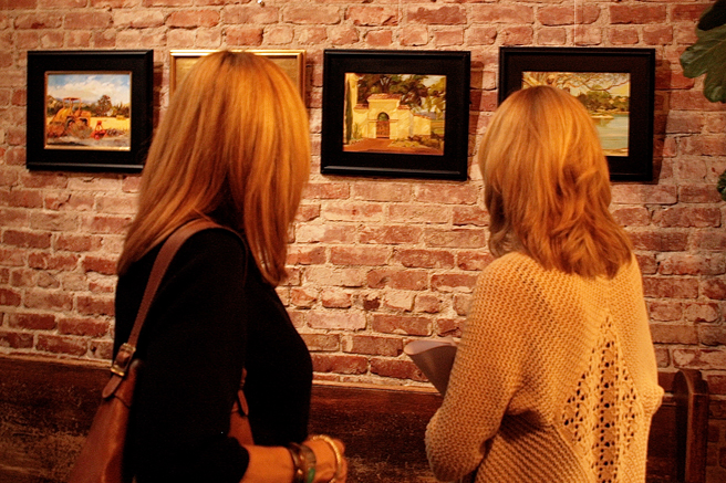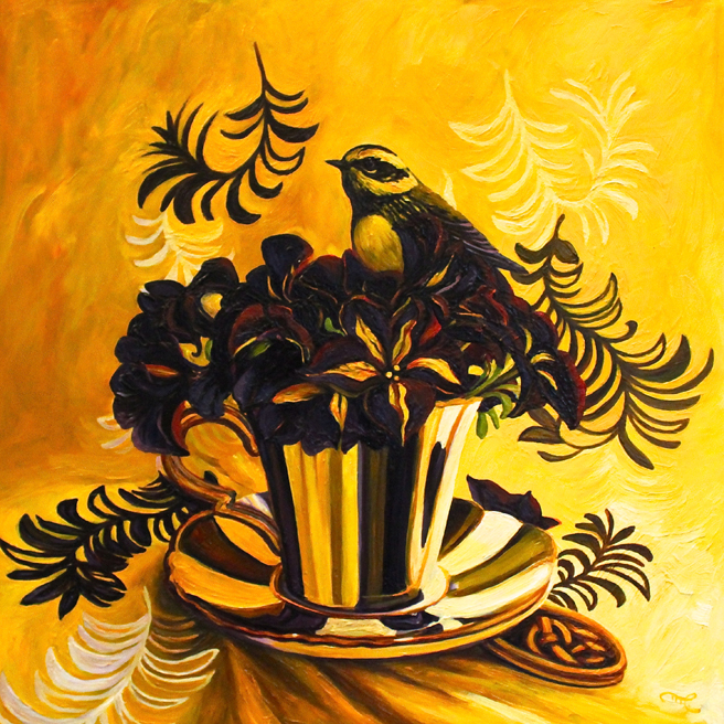 The Art Docents of Los Gatos hosted a fabulous High Tea fundraiser at my home and studio yesterday. This dynamic group (that brings art to our public school) keep themselves well informed by taking in all kinds of exhibitions, documentaries and artist talks. I was absolutely delighted when they approached me with the idea of throwing a catered High Tea here, using the very antique teacups that I use in my Birds and Teacup paintings. The idea was brilliant and I jumped at the opportunity to share my work with such an informed audience! Such a nice way to support this organization which does really valuable work with our children.