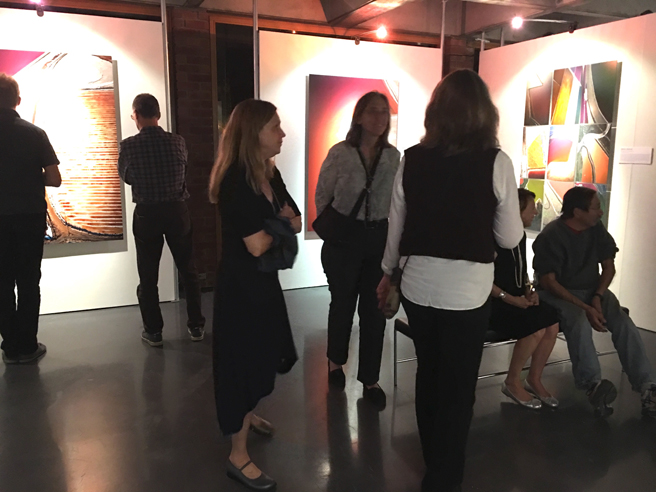 Exhibiting artists Danae Mattes and Liz Hickok with Holly Van Hart.