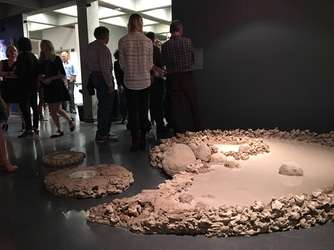 Executive Director Lisa Coscino and Curator Marianne McGrath, talking about the genesis of the show and introducing sound artist Cheryl E. Leonard who played transporting music with objects from the sea and layers of recorded sounds from waves and melting glaciers.