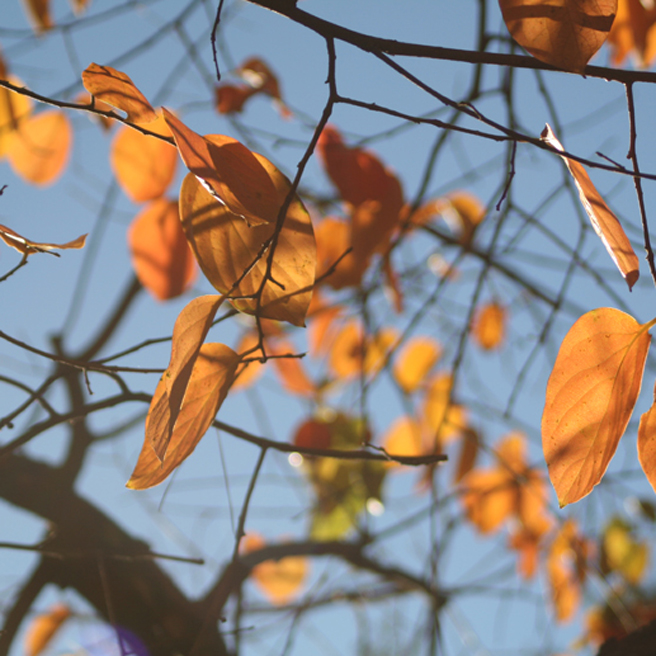 Persimmon Leaves Peach and Blue Photo Marie Cameron 2012
