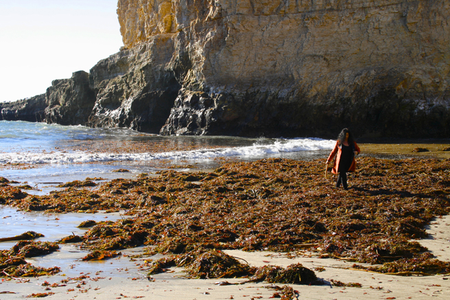 Due to the king tides and winter storms there was more seaweed piled up in the beach than normal for this cove. I decided to take a look.