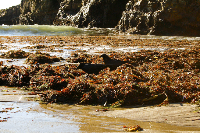 I wasn’t the only one pawing through the seaweed…a pair of ravens that nest in the cliffs were checking it out for any hidden snacks.