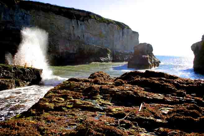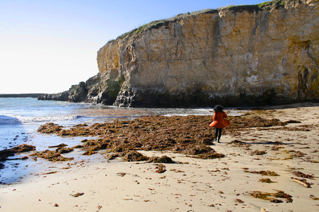 When I go to Shark’s Tooth Cove, one of my favorite beaches in California, I usually scamper down into the cove and nestle myself between the soaring cliffs and the pounding ocean. I am so in love with the keyhole tunnel and the dramatic sea stacks that I’m quite content, me, the resident ravens, the squads of patrolling pelicans and the occasion nude sunbather.