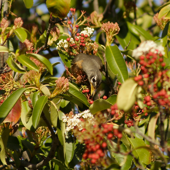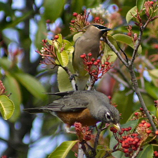Spring arrived on the mantle of a thousand beating wings. More reliable that a calendar, the migrating robins descended on my berry tree and stripped it bare in a single day (with the help of a few cedar waxwings).