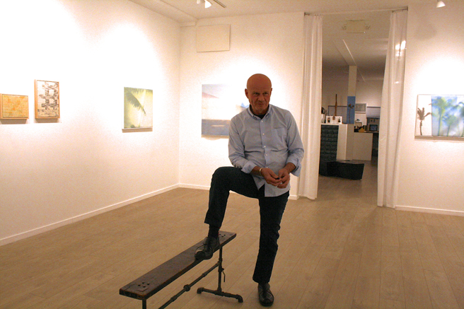 As you can tell I’m a fan of Cichon’s work, sporting one of her silk scarves, the wearable version of one of the panels in front of which we are standing. Mine is based on graffiti from Florence!