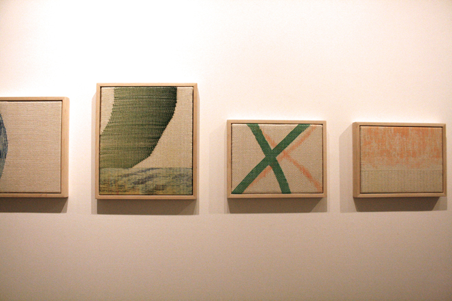 Detail from Bornemisza’s layered panels, Mission College Instructor and Sculptor, Lynne Todaro and Dotti Cichon, Vargas Gallery