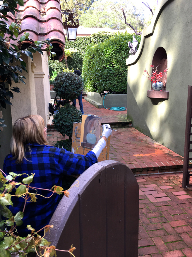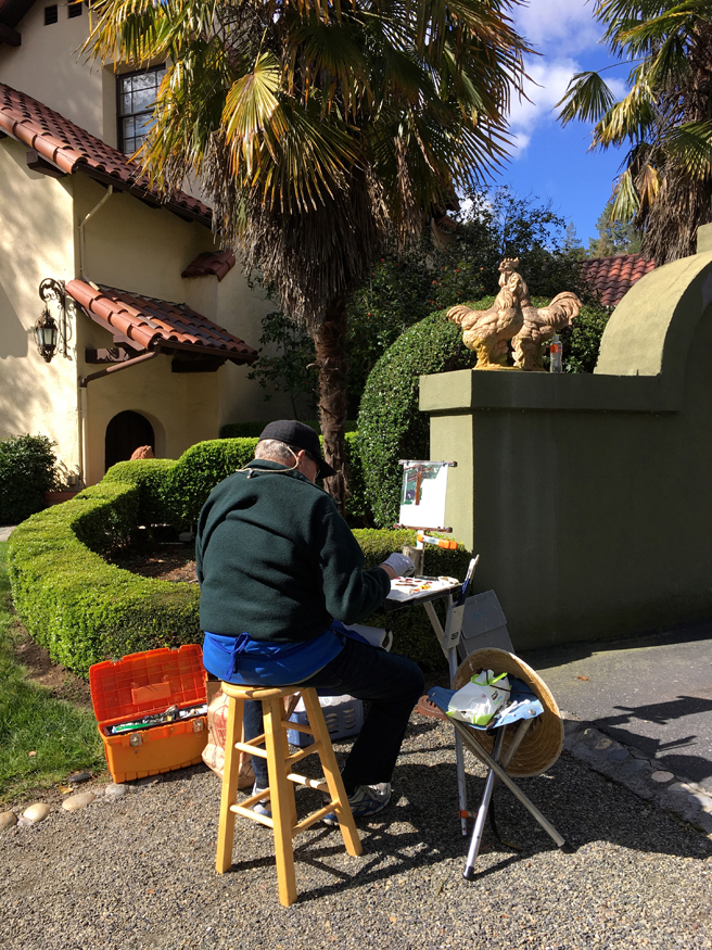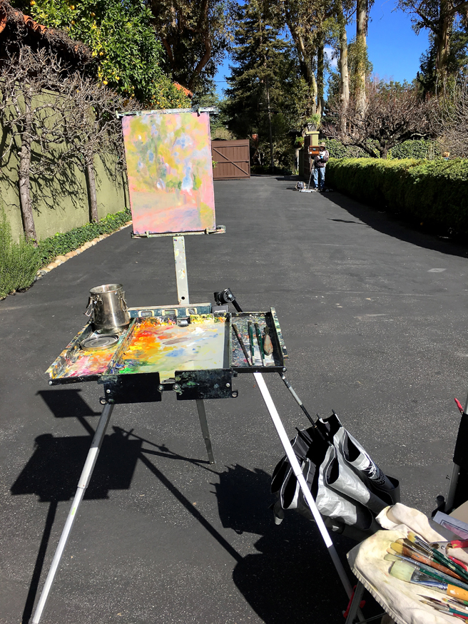 I had the chance to paint with the Los Gatos Art Association’s Plein Air Group a few weeks ago at La Estancia in Los Gatos. I’m afraid I don’t get out with them more than once or twice a year but I always love it when I do manage to break away from the studio. They are such a great group of talented artists who generously share tips and ideas. It’s so invigorating being out “in the field” trying to throw it all down before the light changes or soup’s on!