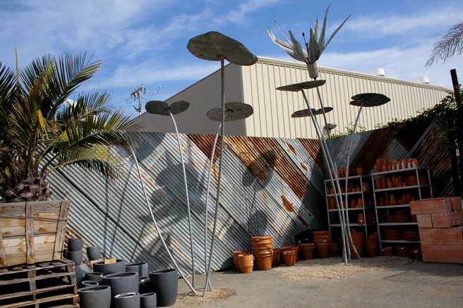 I loved these oversized floral sculptures in metal.