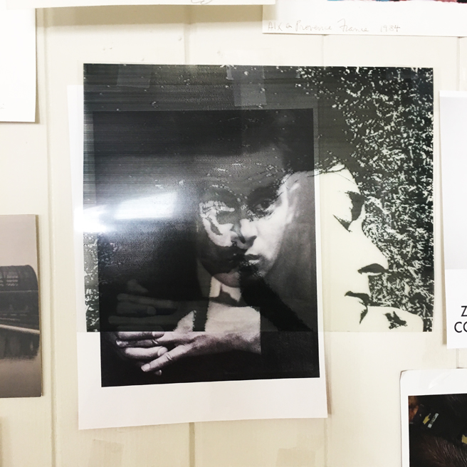 I thought that Egon Schiele might be one of Frohsin’s influences and was intrigued to find this lovely photographic overlay of the artist over a picture of the Austrian artist on her studio wall.