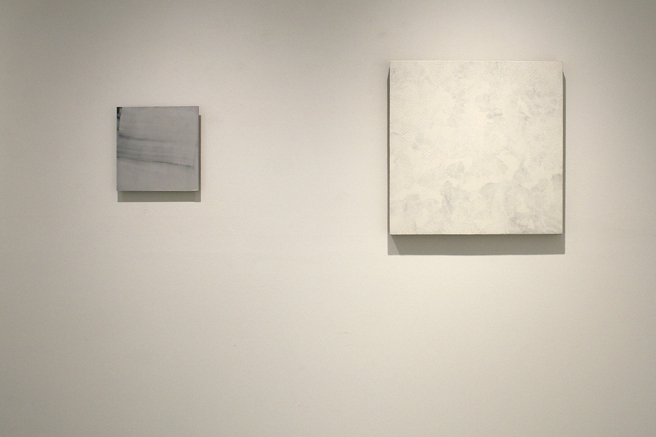 In a closer view you can see texture’s start to appear. A musician friend of mine just let me know that Justine Frischmann, (her work, Lambent #38 on the left) was from the band Elastica!
