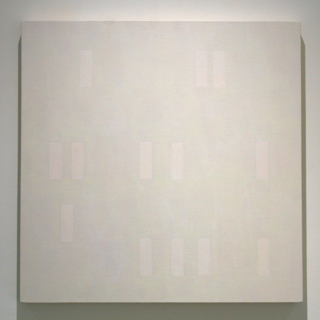 This series of tape pieces, Untitled #1 – #16, from 2005 is made up contact tape on fluted acrylic panels.